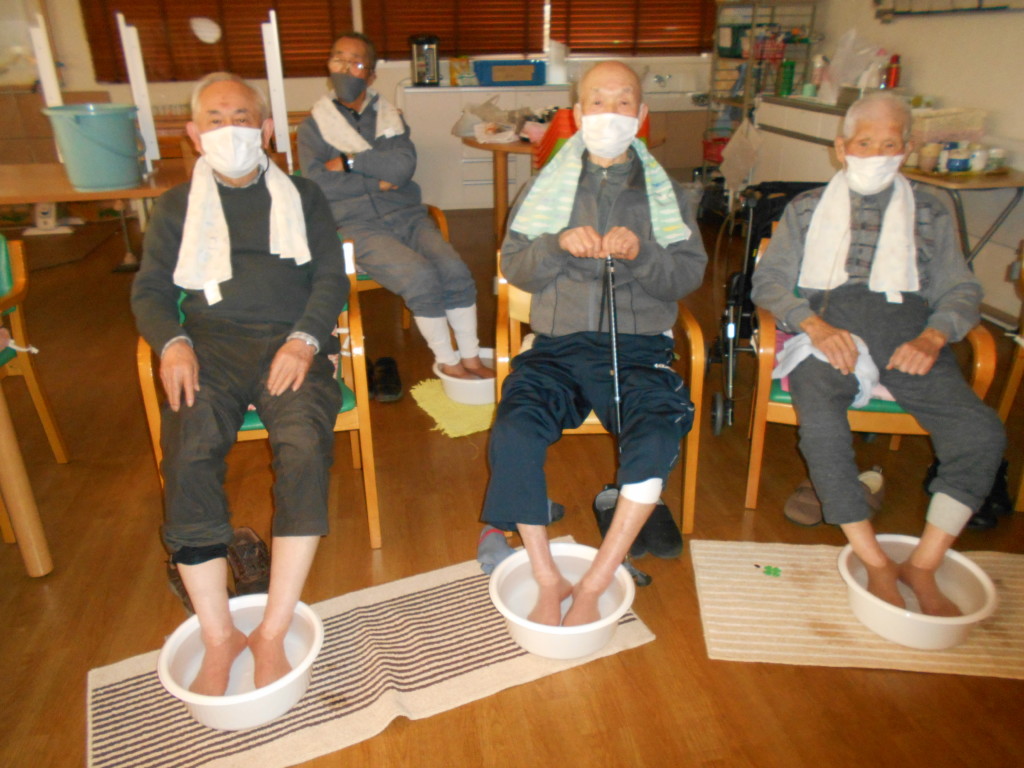真ん中☛男性陣はアロマオイルを垂らしたお湯にホッカホカ♨