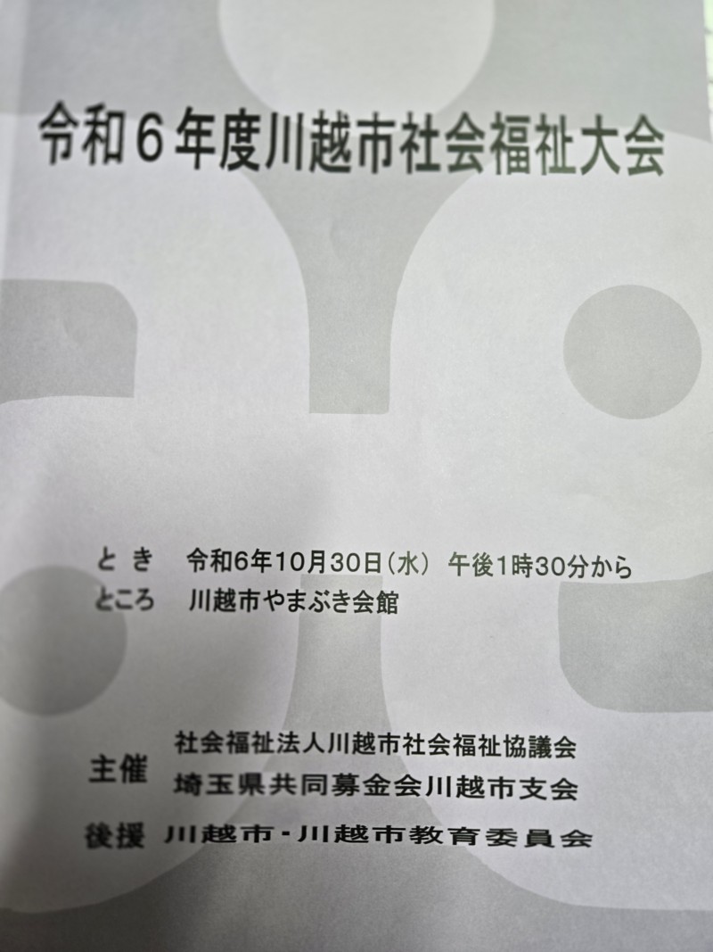 去るR6年10月30日(水)にR6年度川越市社会福祉大会が川越市やまぶき会館に於いて挙行されました。