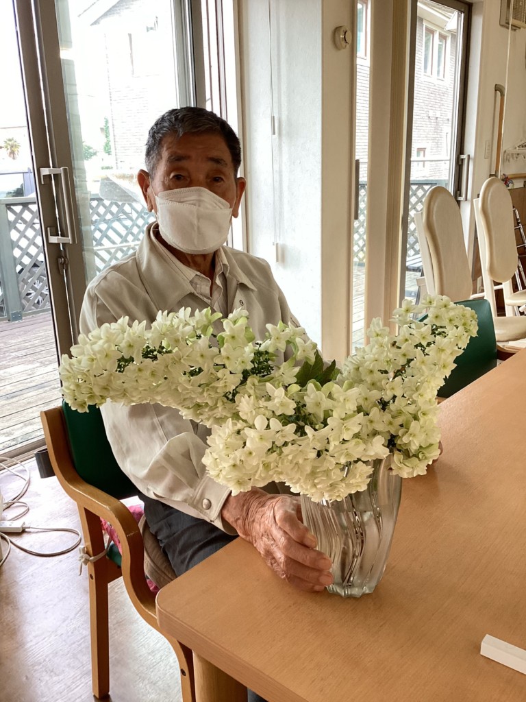 ご利用者様より柏のような形の大きな葉、ピラミッド形に咲く花が特徴のカシワバアジサイをいただき季節を感じております。いつもありがとうございます。