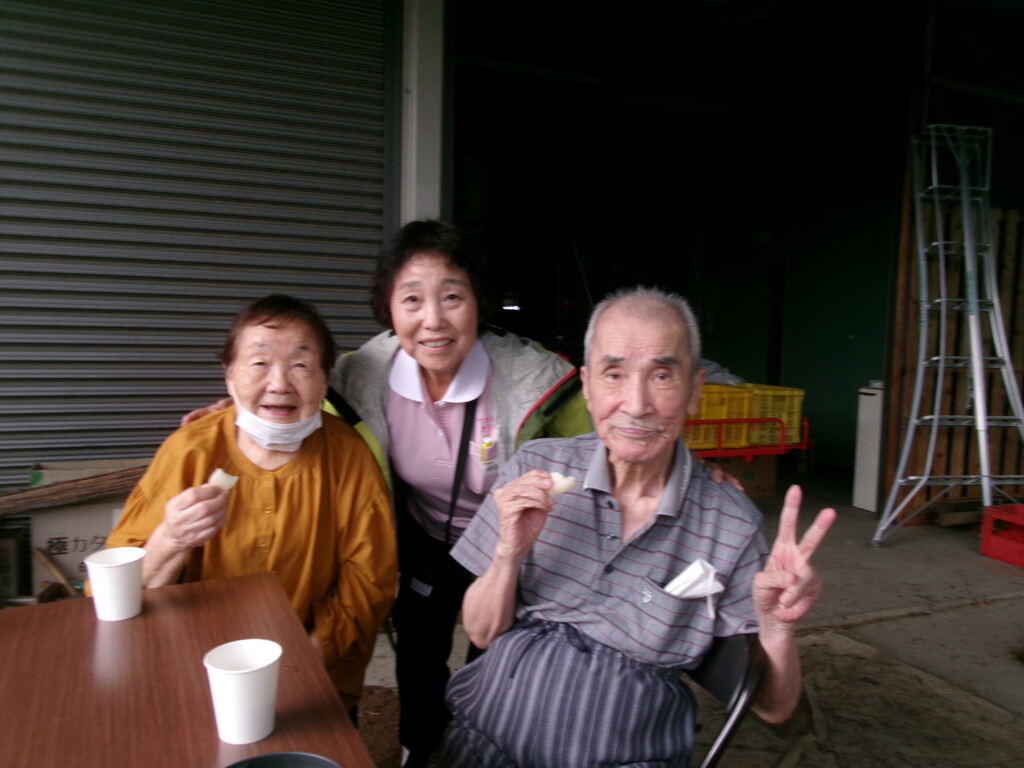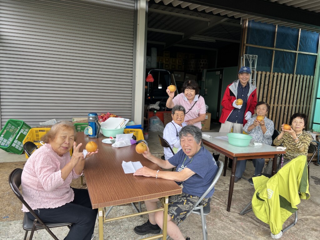 「私が採ったのが甘いよ」「いやいやこっちも食べてみてよ」「もぎたてだから新鮮だね」
