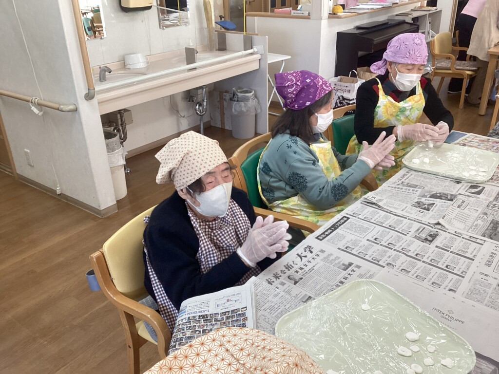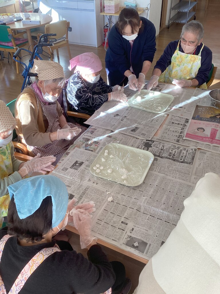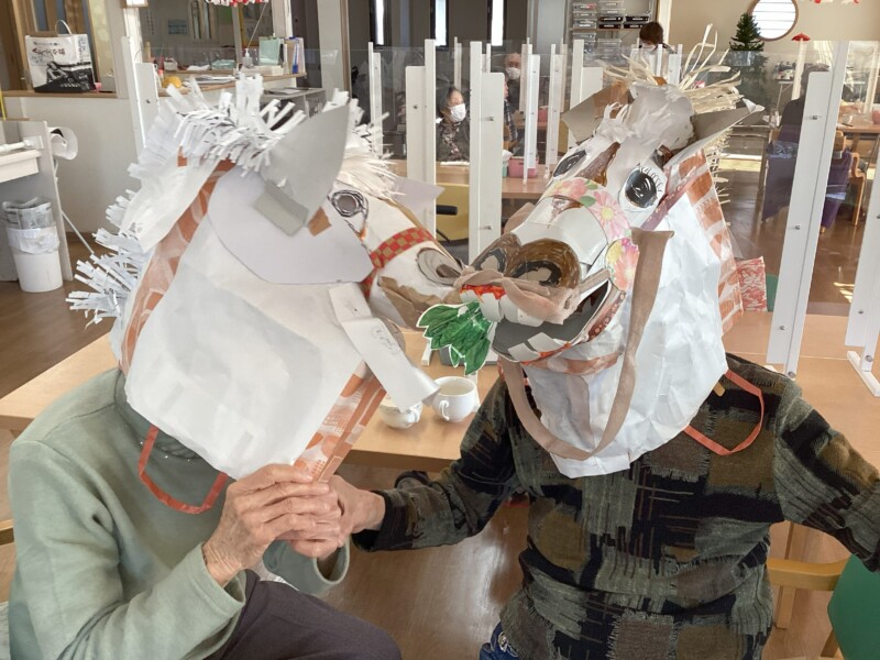 馬の登場から初詣、甘酒、もっと小さく小さくと皆さんで丸めた白玉入りお汁粉、あれ❓の連続福笑いと賑やかに始まりました。