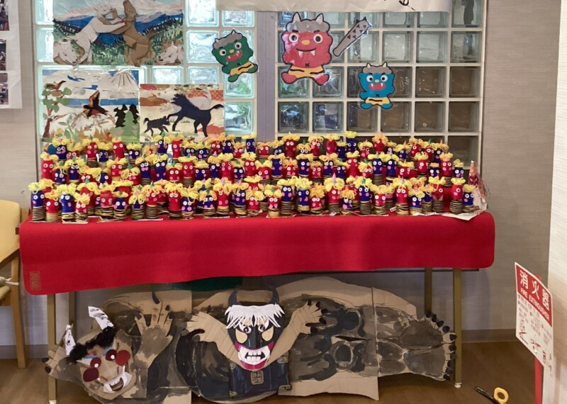 カステラに鬼の顔を付けたおやつも可愛かったです。