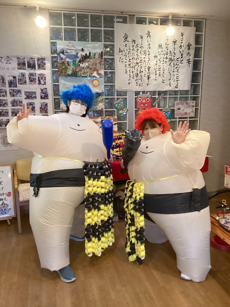 なんと今年は可愛い赤鬼と青鬼が・・・。豆をぶつけるのが可哀そうなんて声も?