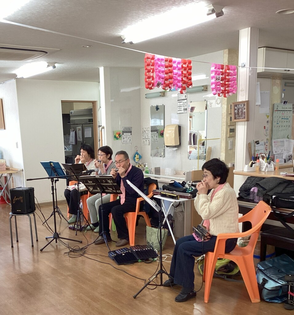 大小さまざまなハーモニカの演奏会♬童謡から歌謡曲までたくさん楽しませていただきました。ボランティア活動の皆様ありがとうございます。