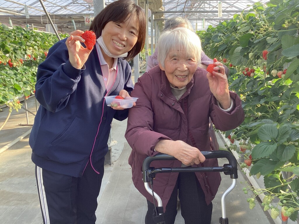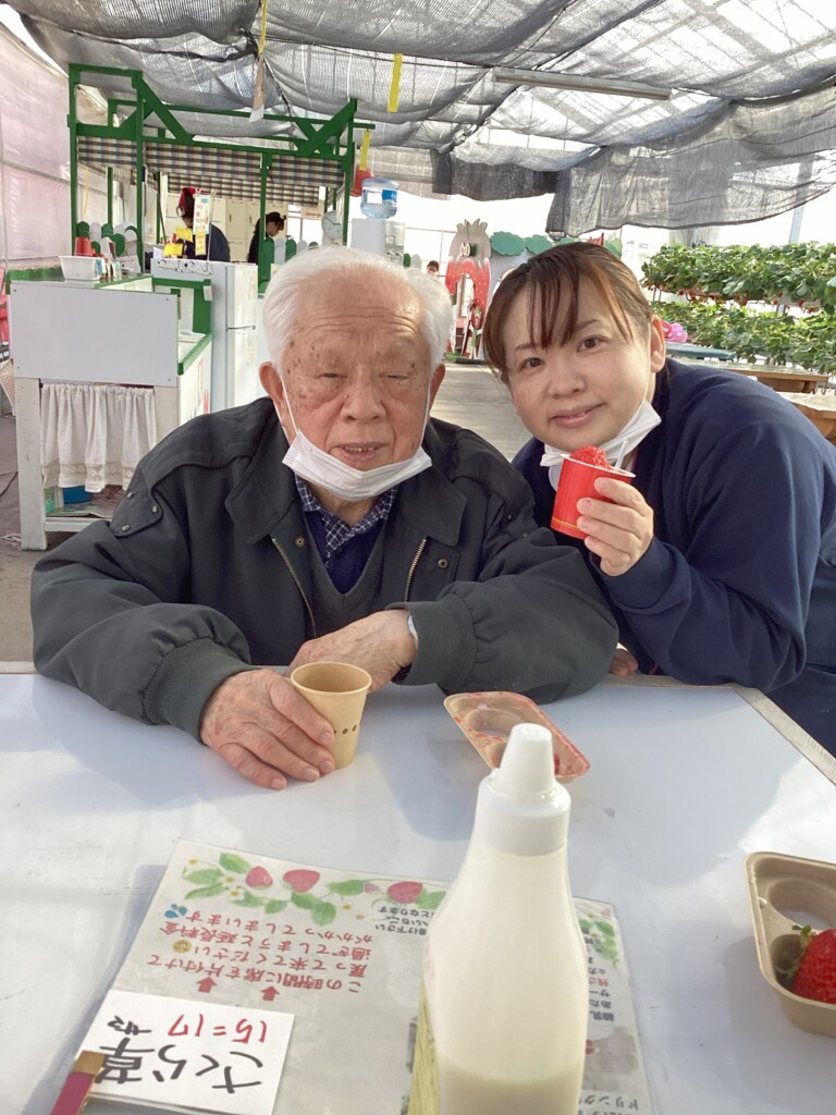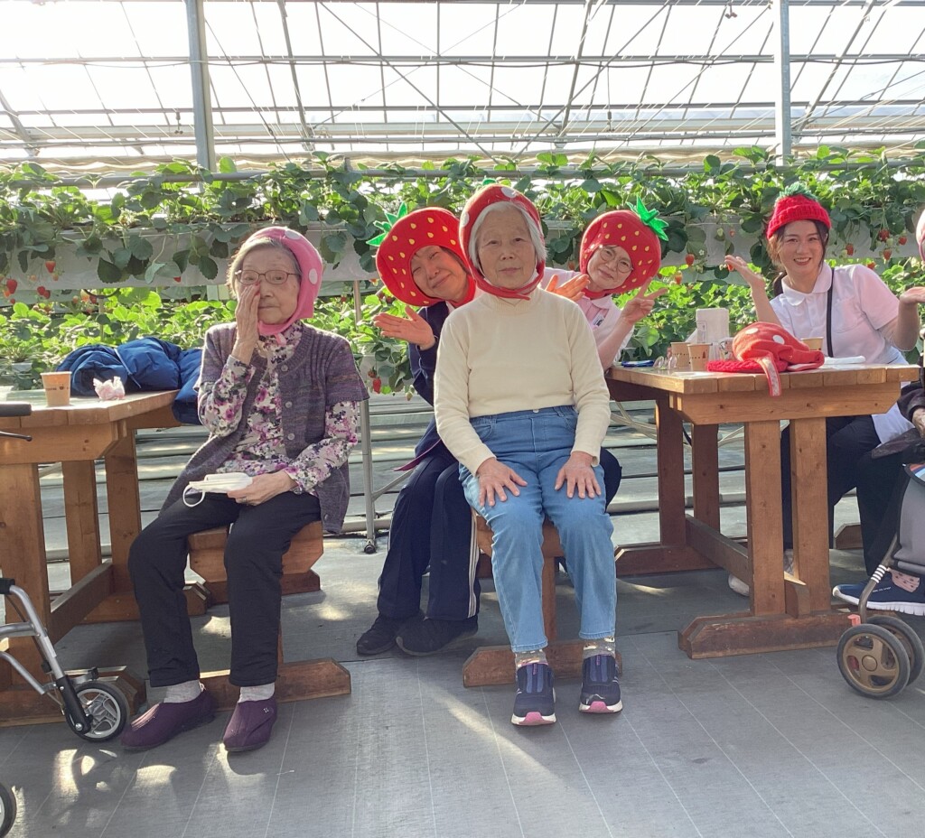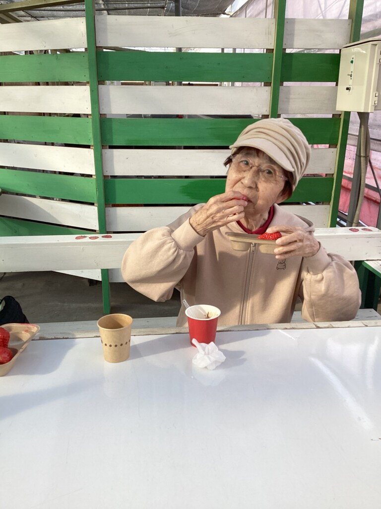 旬のいちごを心ゆくまで堪能してきました🍓いびつな形のいちごの方が甘いそうですよ。ご利用者様と職員の美味しい笑顔ご覧ください。